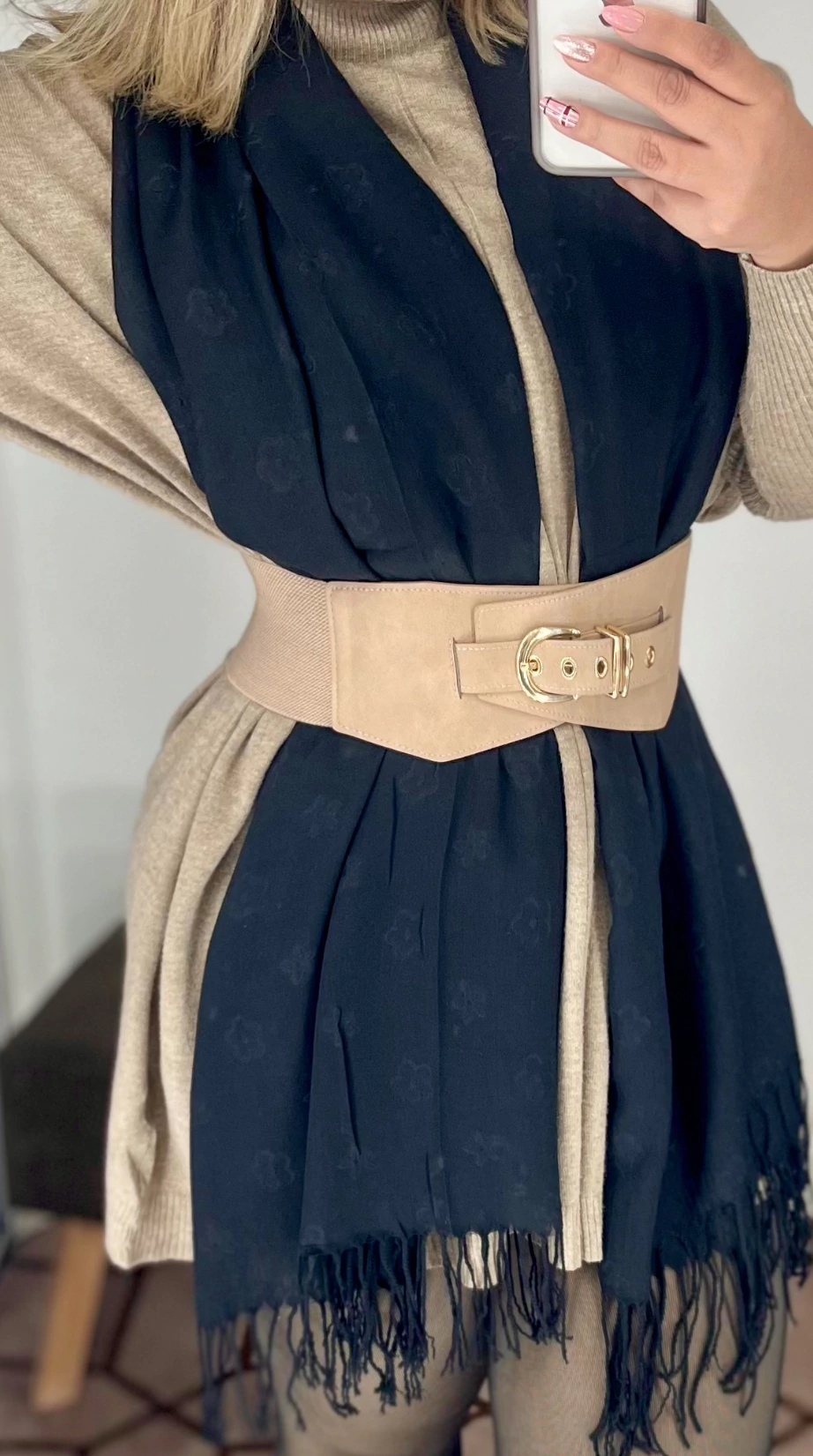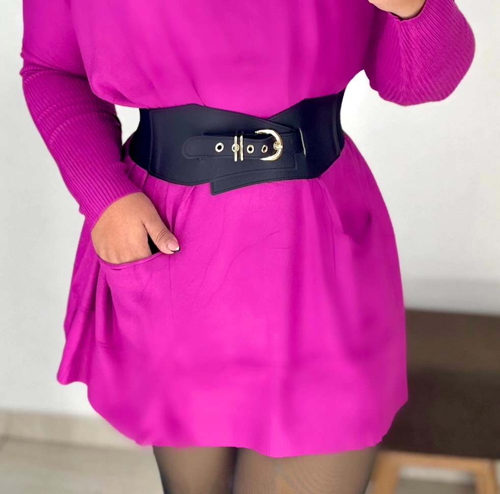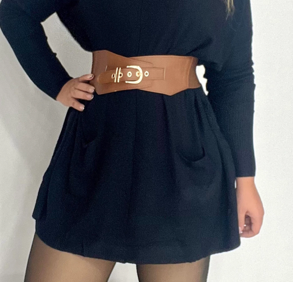 Cinto em material courino na parte frontal e todo em elástico largo proporcionando um modelo versátil e estiloso, ele pode ser usado para acinturar peças como mini vestes, vestidos ou também sobre peças como calça , saia, short, modela super bem e tem fivela cromada em dourado.