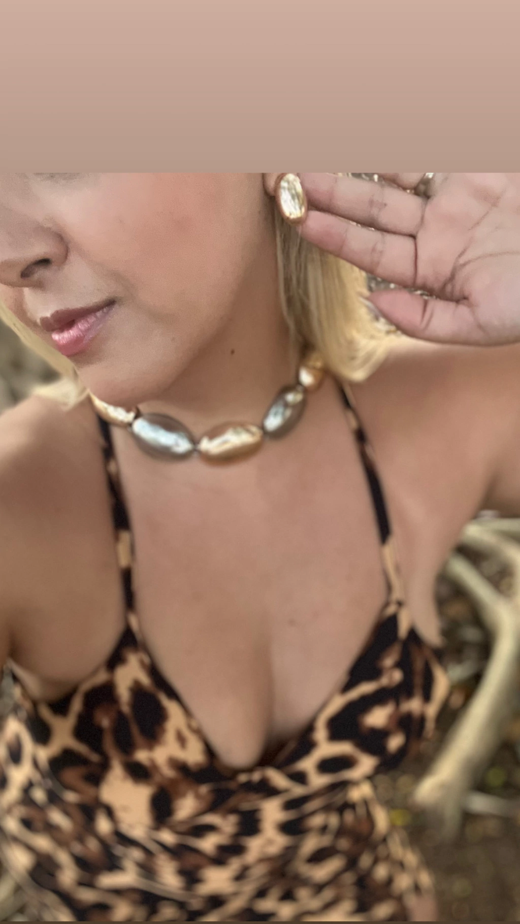 Conjunto composto por max colar em esferas em dourado e em prata, brinco em dourado sendo uma esfera menor. Conjunto elegante demais, o acessório que vai fazer toda difença no seu loook, capaz de transformar um look básico em um look moderno.