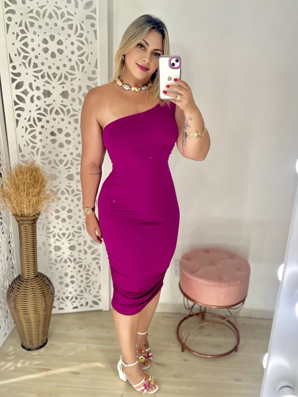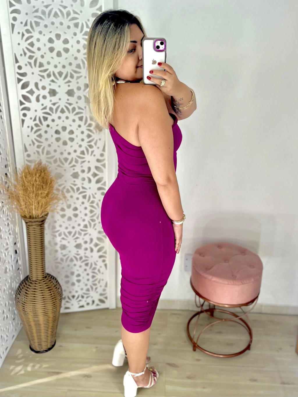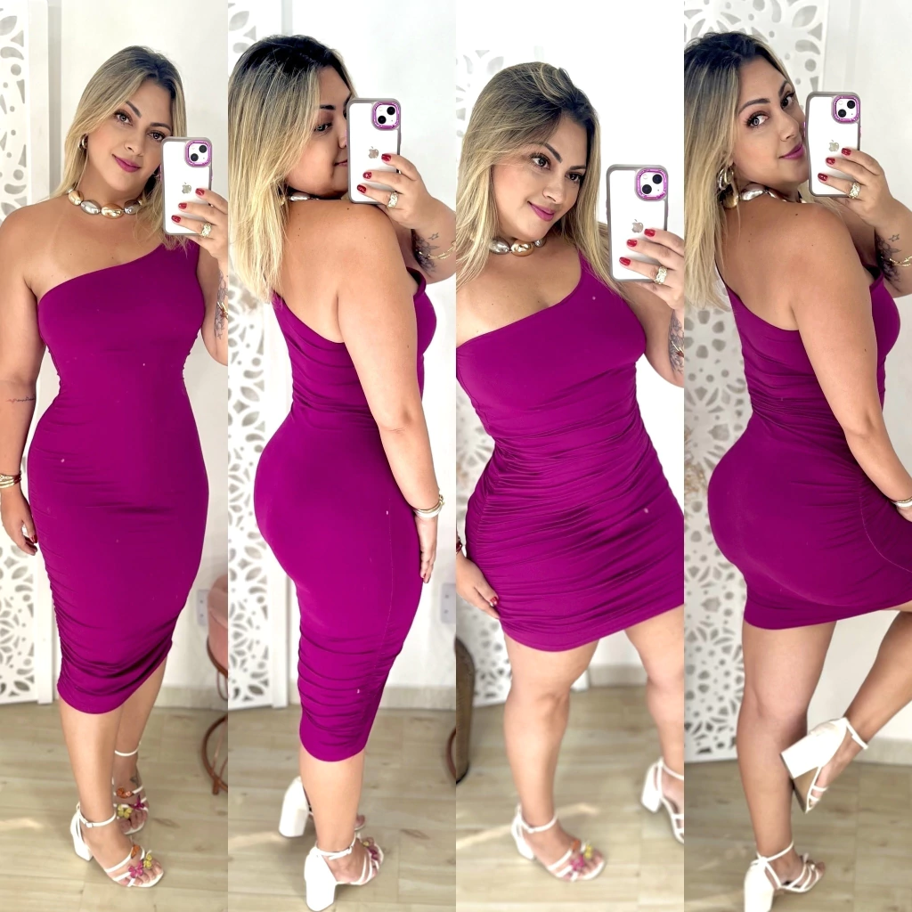 Vestido em poliamida premium, não possui bojo, tem forro na parte do busto, possui drapeado nas laterais e pode ser ajustado se tornando midi ou curto, tecido fresco , macio e que super estica vestindo do 38 ao 44.