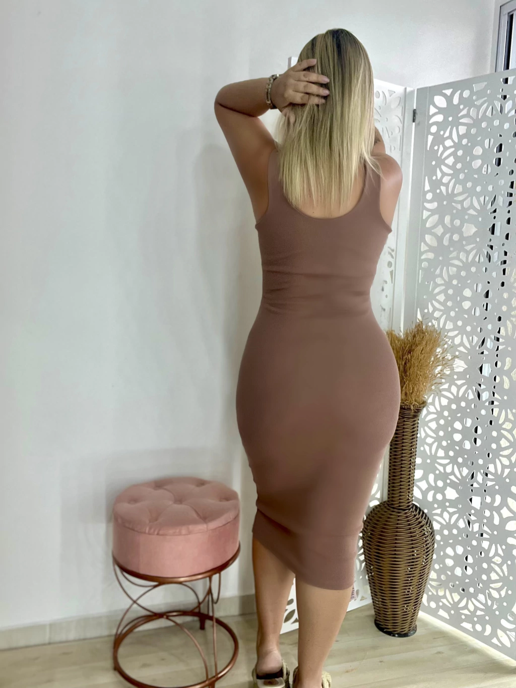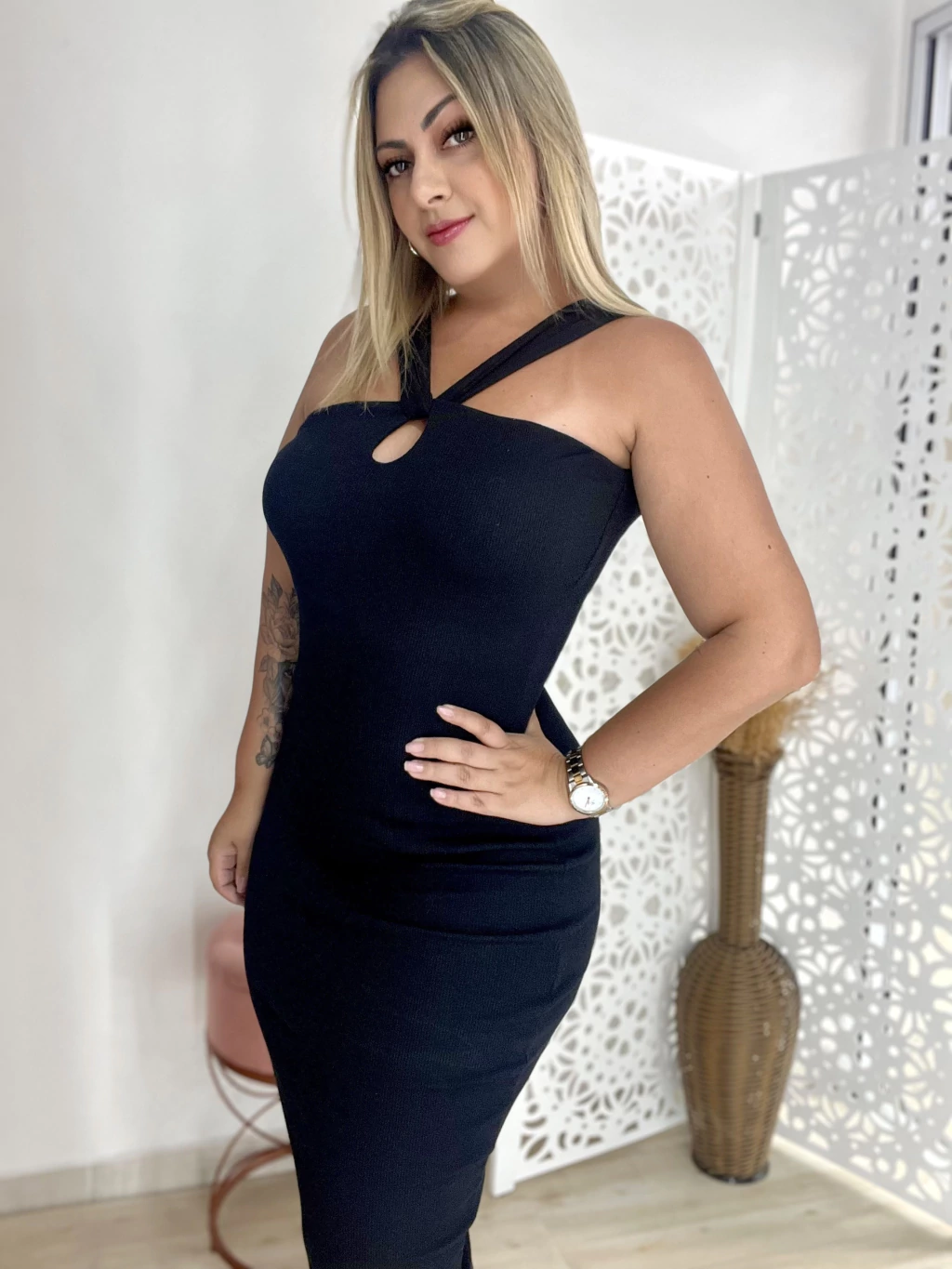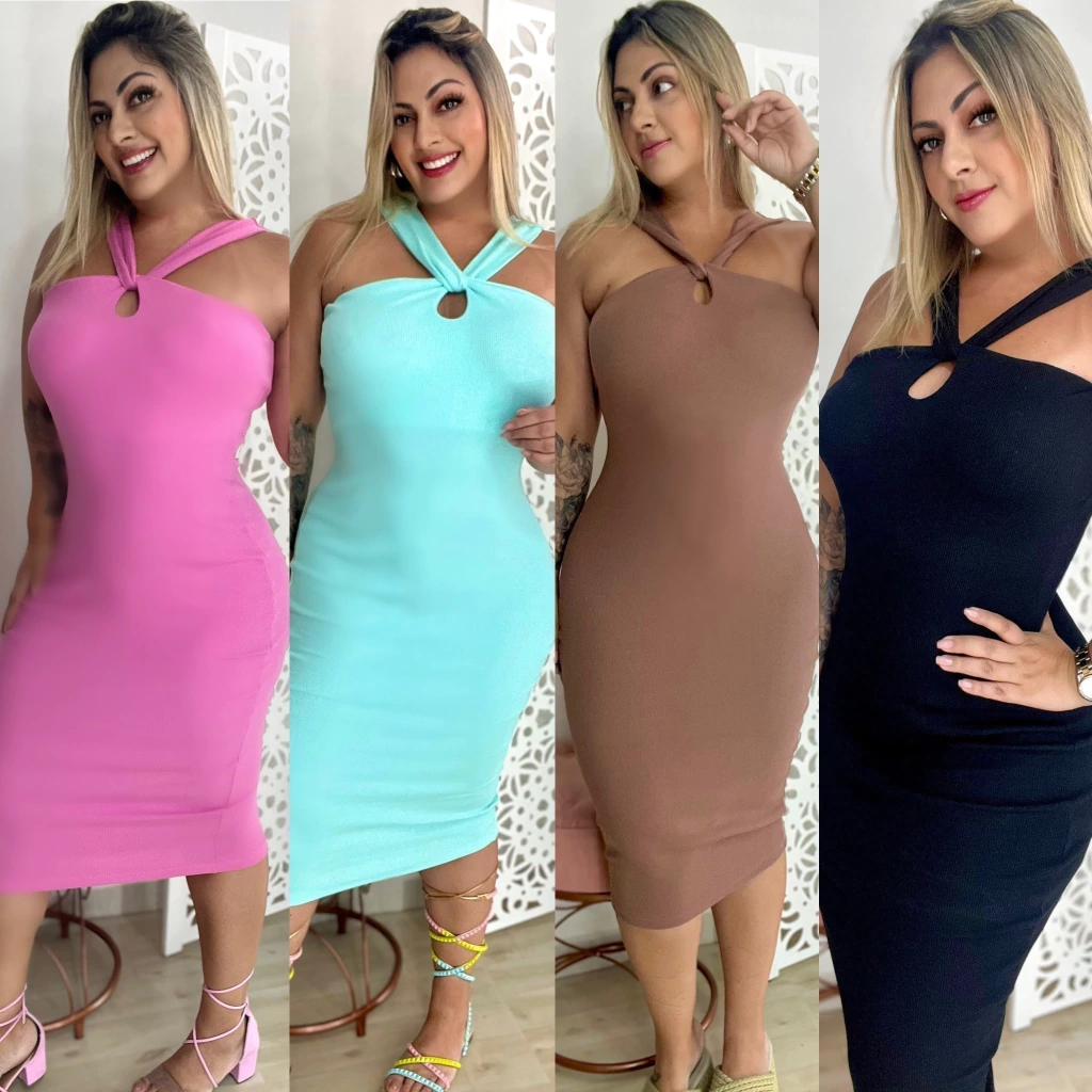 Vestido em canelado premium com muito elastano! Possui detalhe frontal e nas costas alças grossas proporcionando muito conforto! Comprimento midi, possui bojo mas pode ser retirado se preferir, possui forro na parte do busto. Veste do 38 ao 44/46.